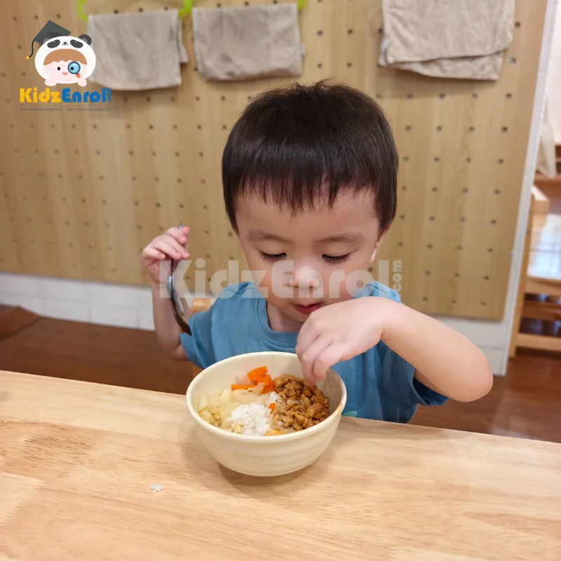 My kid likes the school here. The teachers are very kind. In terms of studies, all three languages are aligned with the same chapter, which is very good. The teachers are caring throughout the school. The food is a balanced meal with generous portions.